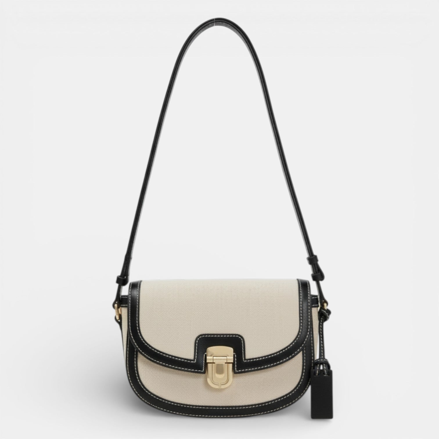 Imagina llevar contigo un bolso que combina estilo y practicidad sin esfuerzo. Este bolso saddle de lona de contraste eleva cualquier look, desde un outfit casual de día hasta un conjunto urbano chic. Su diseño estructurado y moderno aporta sofisticación mientras mantiene un toque desenfadado y juvenil.