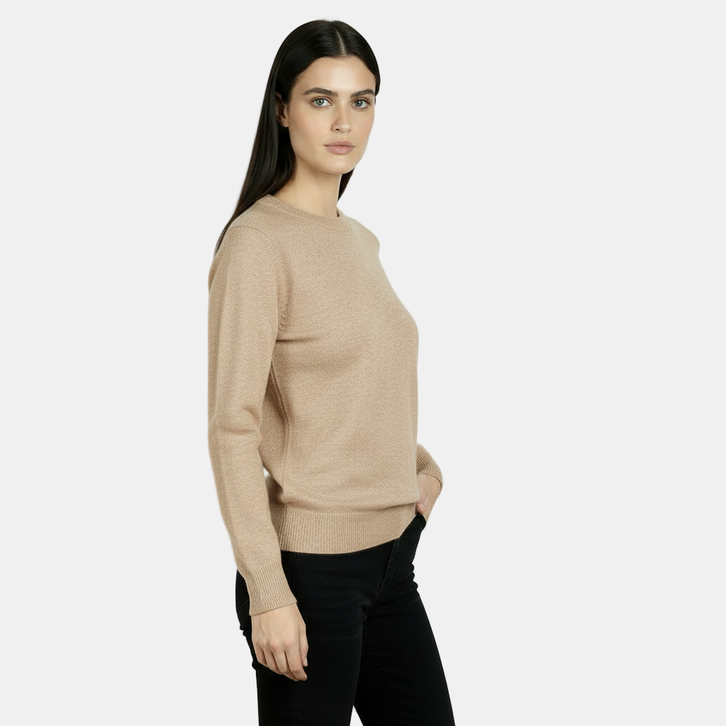 Descubre el equilibrio ideal de calidez y silueta con nuestro suéter de cuello redondo delgado. Diseñado para la mujer moderna, este pullover de manga larga es la pieza esencial para otoño e invierno. El tejido de lana mezclada proporciona suavidad al tacto y un ajuste favorecedor que realza tu figura. Vístelo solo o como capa bajo una chaqueta. La mezcla de lana ofrece propiedades térmicas superiores, manteniendo el calor corporal. El corte slim y el cuello redondo permiten combinarlo fácilmente para un look casual o formal. Es la elección inteligente para un estilo cómodo y atemporal.Detalles